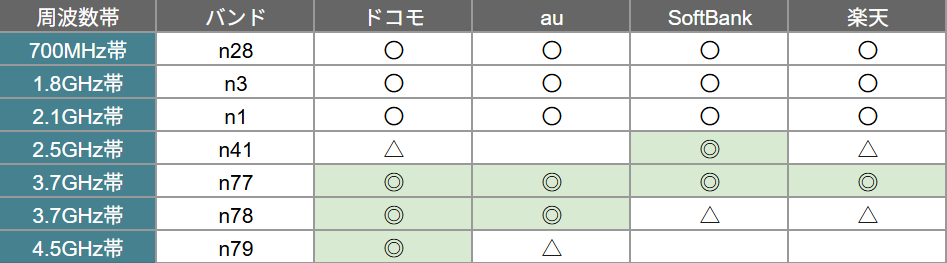 下が日本の主要5Gバンドなので合わせて見てください。